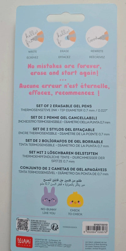Set 2 Penne Cancellabili Hoppy Easter - Bunny e Chick - Limited Edition